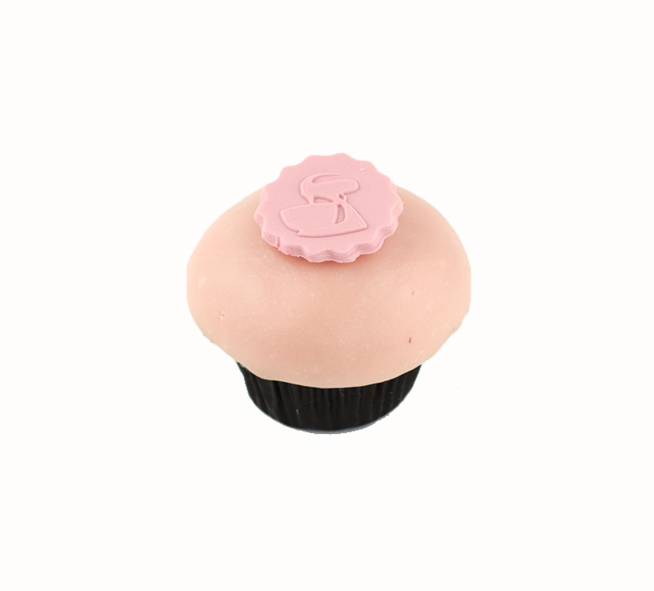 Strawberry mini cupcake studded with fresh strawberries and topped with strawberry frosting.